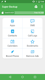 2. setelah itu buka aplikasinya, dan akan muncul menu pilihan, aplikasi, SMS, Kontak, Riwayat panggila, kalender, Bookmark, Google Drive, Kembalikan foto anda. kamu tingal pilih saja mana yang ingin kamu backup atau cadangkan