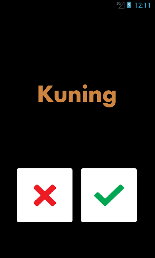 jadi kamu hanya cukup mengatakan/tab benar atau salah gitu aja sesuai apa yang kamu lihat, jika kalian lihat tulisan diatas itu warna coklat namun tulisanya mengatakan kuning, hal yang berbenturan pasti secara tidak langsung otak kamu pertama kali main ini akan tawuran. hal itu wajar sebab selama ini kita tidak pernah melatih keduanya.